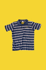 TITLE: BLUE AND WHITE STRIPED POLO SHIRT