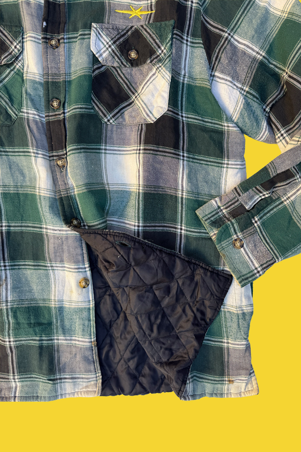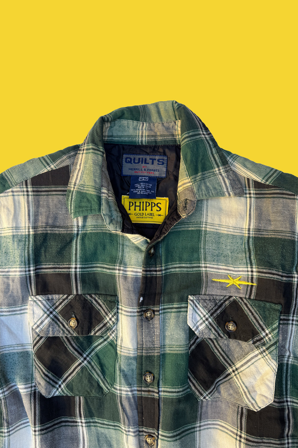 TITLE: GREEN GINGHAM PLAID QUILTED SHIRT