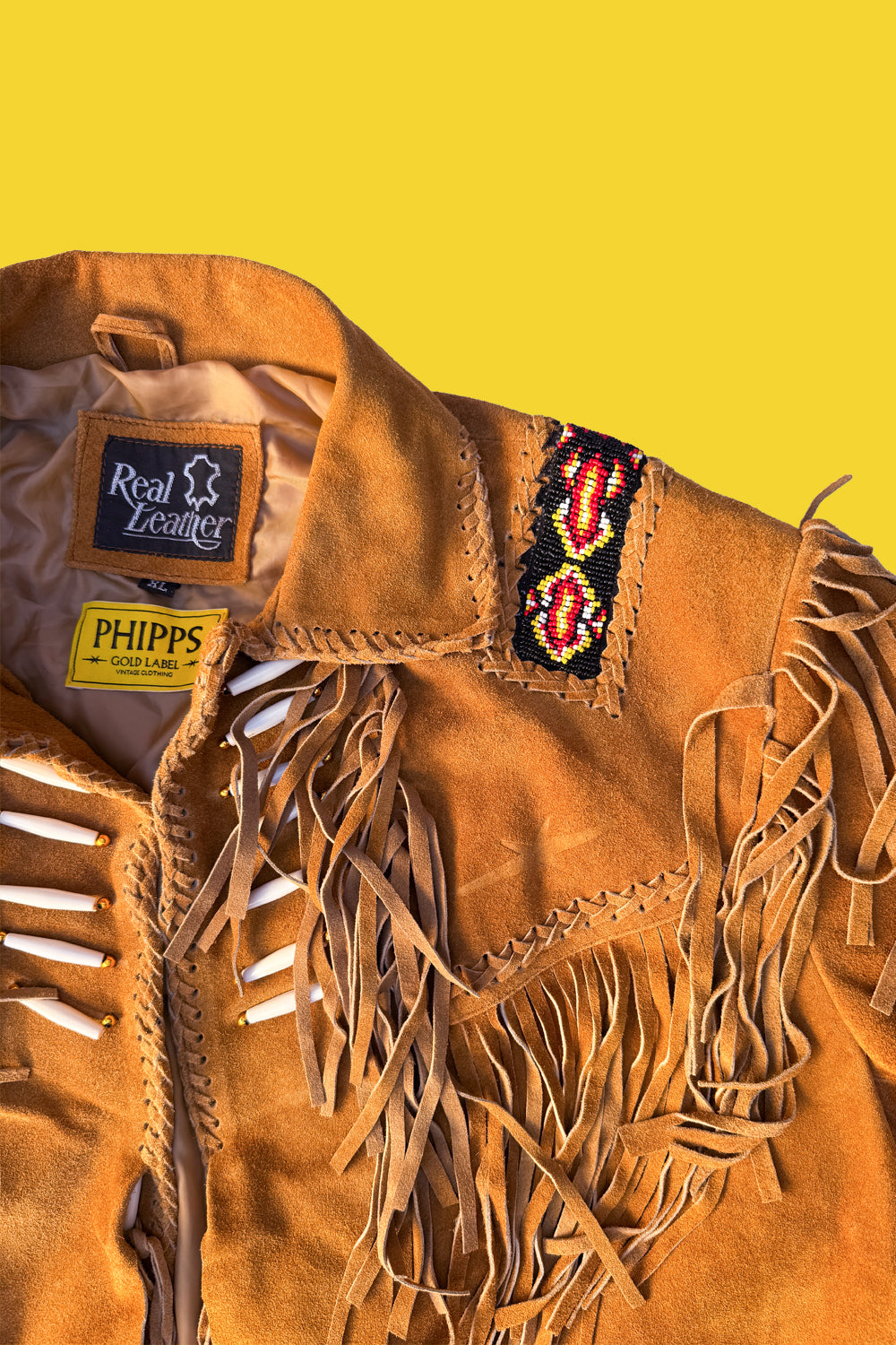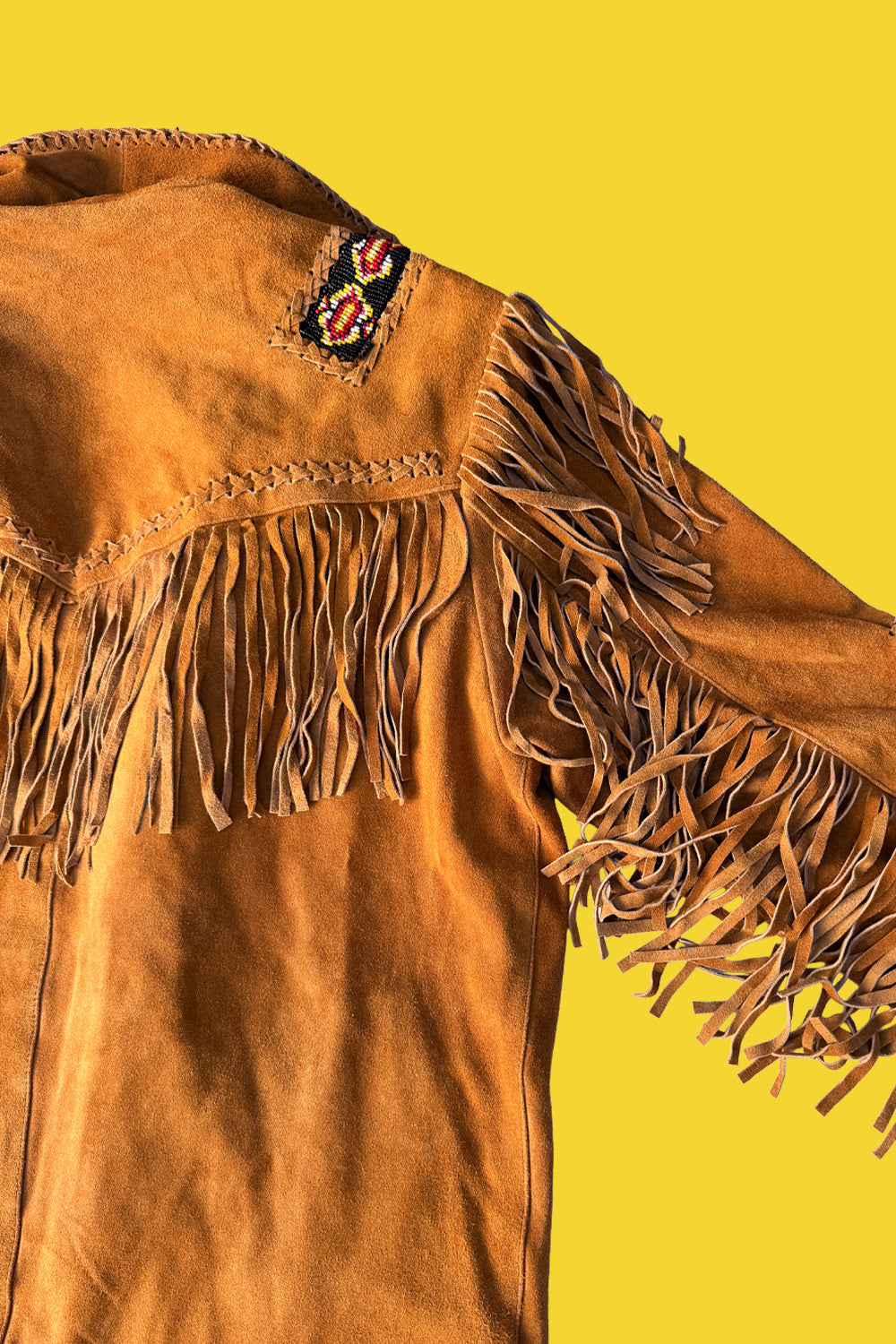 TITLE: TASSLE AND BEADED SUEDE JACKET