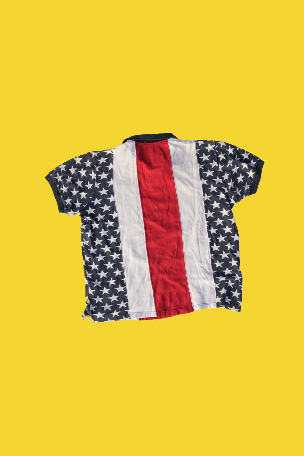 TITLE: VERTICAL STRIPE AMERICA SHORT SLEEVE POLO