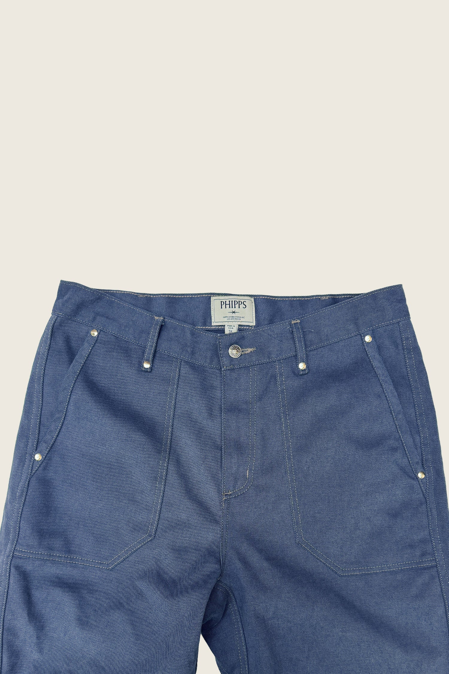 Patch pockets at the front and back, with studded belt loops and reinforcements at stress points. Clean, tough, and destined to become a staple.