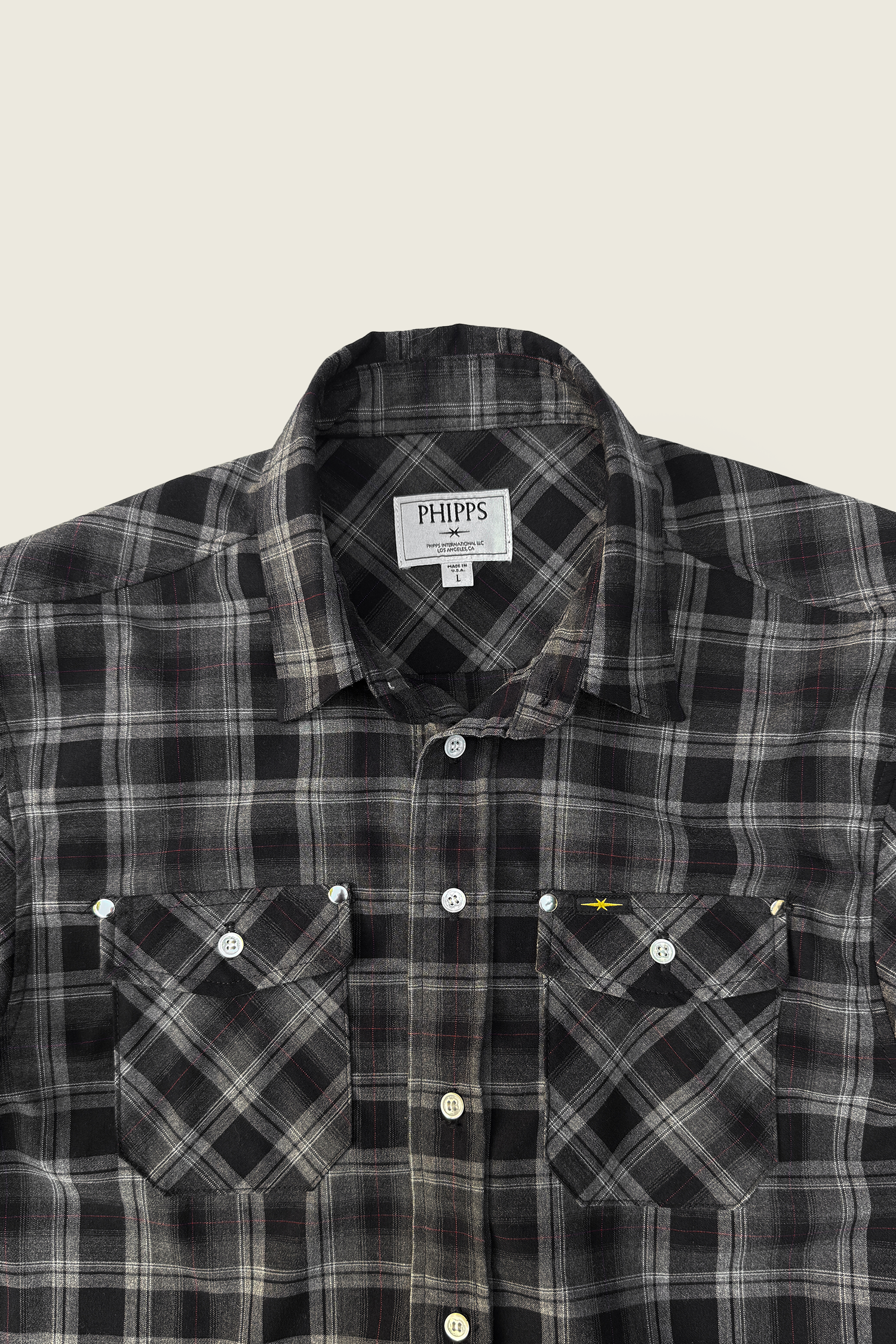 Cut from rustic plaids that gets better with wear. Classic fit. Double chest pockets. Silver studs on the flaps for a little bar-fight sparkle.