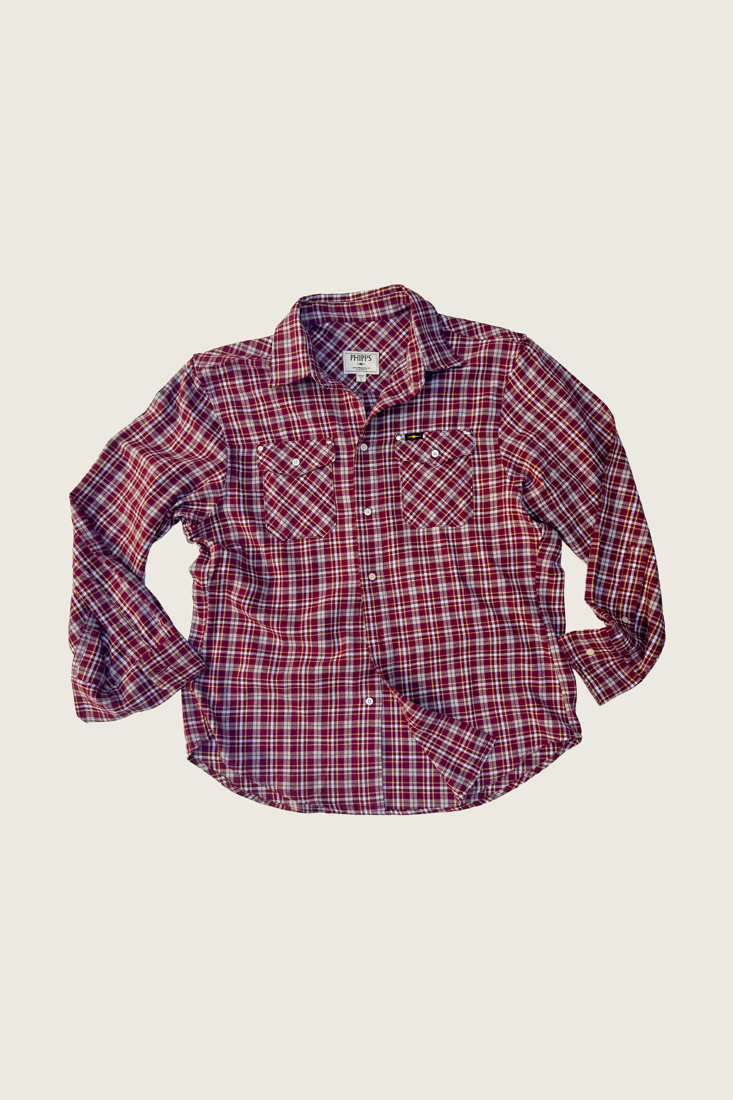 Cut from rustic plaids that gets better with wear. Classic fit. Double chest pockets. Silver studs on the flaps for a little bar-fight sparkle.