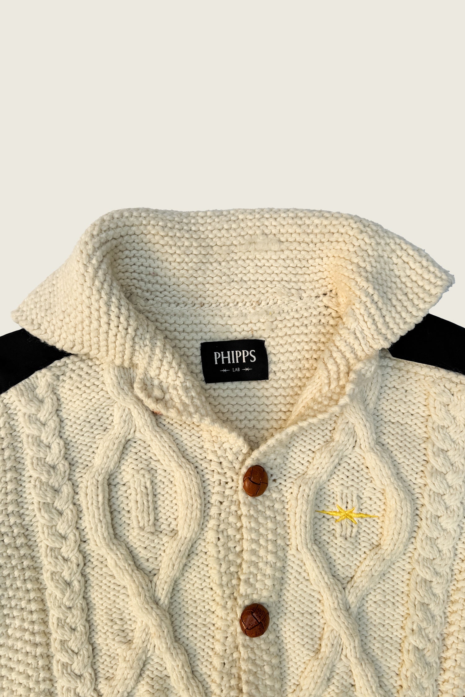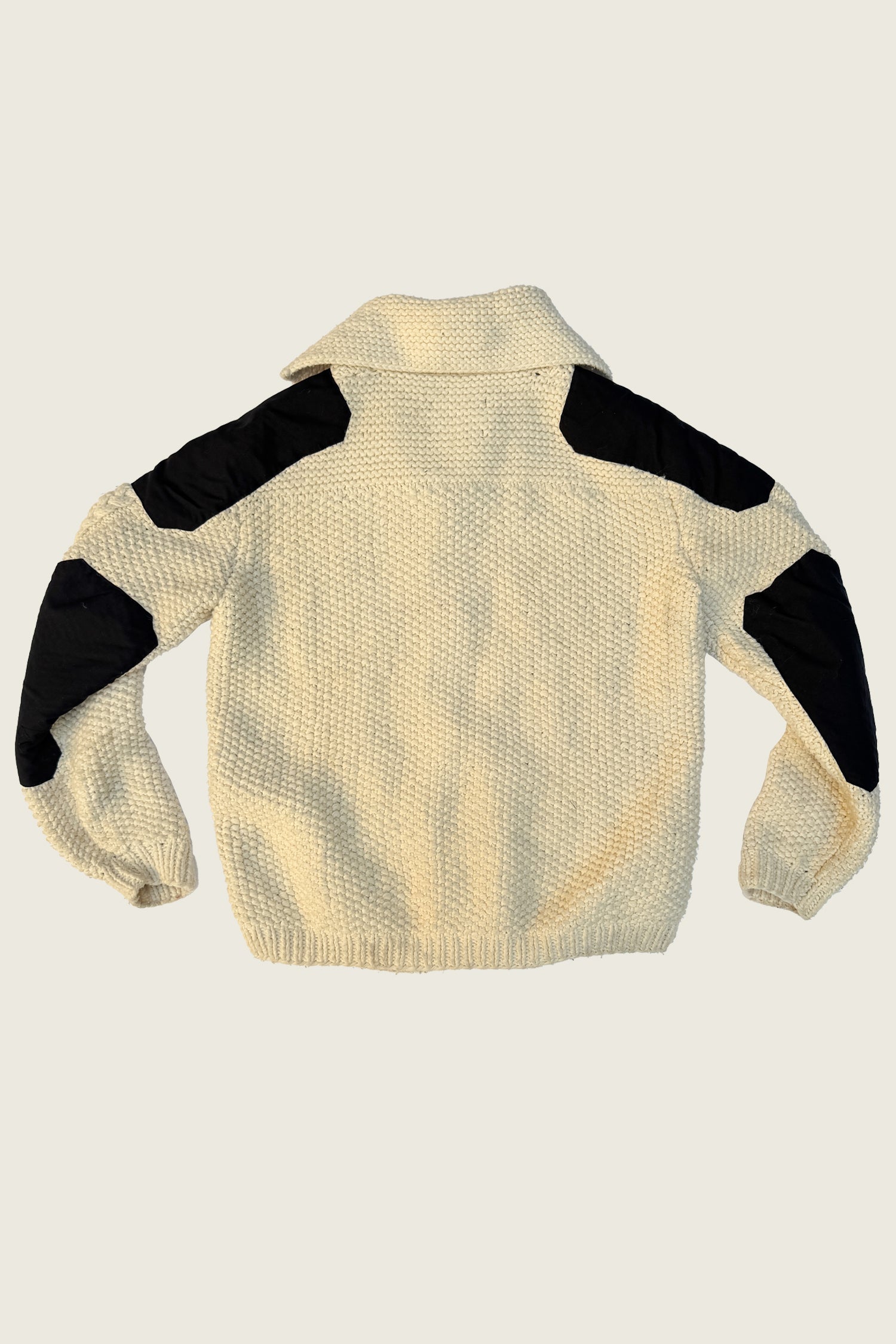 A rugged twist on a classic, the Utility Fisherman’s Sweater combines the timeless warmth of a vintage Aran cable knit with durable nylon utility panels. Each item is uniquely upcycled from vintage stock seamlessly blending heritage craftsmanship with modern functionality.